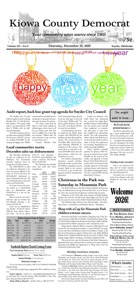 The Southern Kiowa Chamber announced the winners of their Christmas Light Pole Decoration Contest...
